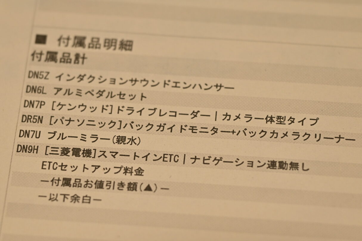 契約書を作成する際、当然のように並んでいる純正オプションの数々。